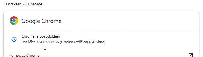 O brskalniku Chrome si poglejte verzijo programa brskalnika.