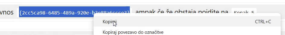 {2cc5ca98-6485-489a-920e-b3e88a6ccce3}, z desno miškino tipko kliknite na izbrano in nato z levo miškino tipko kliknite na tipko Kopiraj.