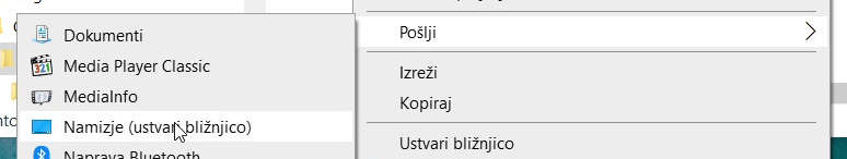 Pošlji v in nato z levo miškino tipko kliknite Namizje (ustvari bližnjico) ali katero koli možnost želite.