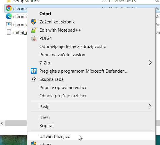 Novo in nato z levo miškino tipko kliknite na tipko Bližnjica