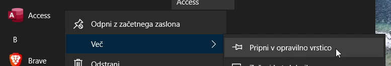 Več in nato s levo miškino tipko kliknite na Pripni v opravilno vrstico da dodate bližnjico v opravilno vrstico.