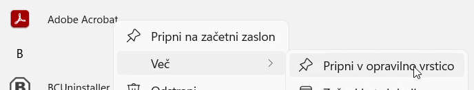 Pripni na začetni zaslon, da pripnete bližnjico v meniju Start.