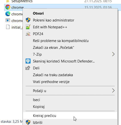 Prečice iz Windows upravitelja datoteka