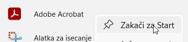Zakači za Start da dodate prečicu u zakačene programe Start menija.