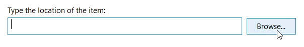 Finish button to finish creating the shortcutType the location of the item:.