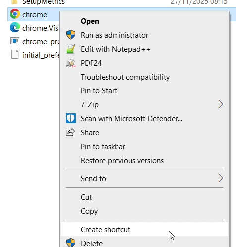 Manually create the shortcut