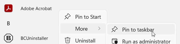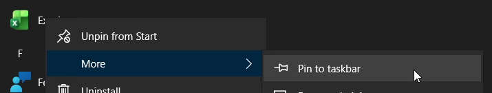 More and then left mouse button click on the Pin to taskbar to add shortcut in the Windows taskbar.