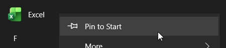 Pin to Start to pin the shortcut in the Start menu.